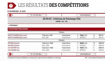 a e lieu le Critérium de Printemps U14 et U16 à Cenon. Nos Benjamins et Minimes y ont participé, voici leurs résultats: